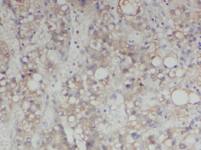 | 圖像: | ![]() 將FNab00053(ABL2抗體)以1:50稀釋度,使用石蠟包埋的人肝癌組織切片進(jìn)行免疫組織化學(xué)實(shí)驗(yàn)。