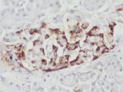 | 圖像: | ![]() 將FNab00373(AMPH抗體)以1:100稀釋度,使用石蠟包埋的人胰腺癌組織切片進(jìn)行免疫組織化學(xué)實(shí)驗(yàn)。